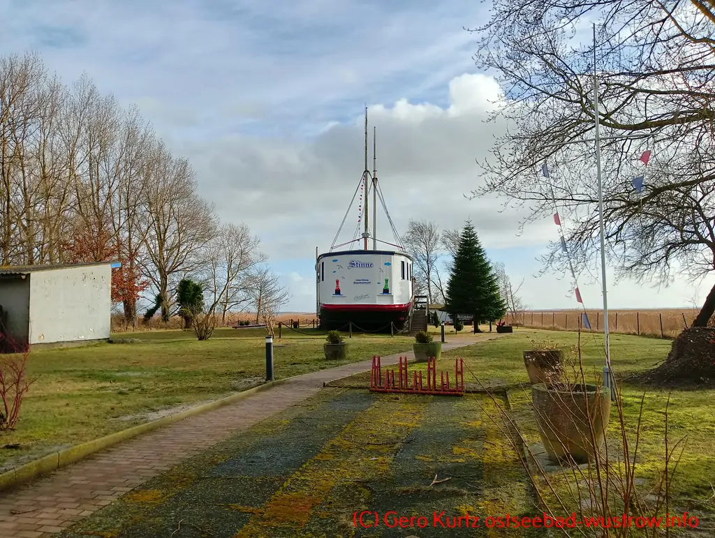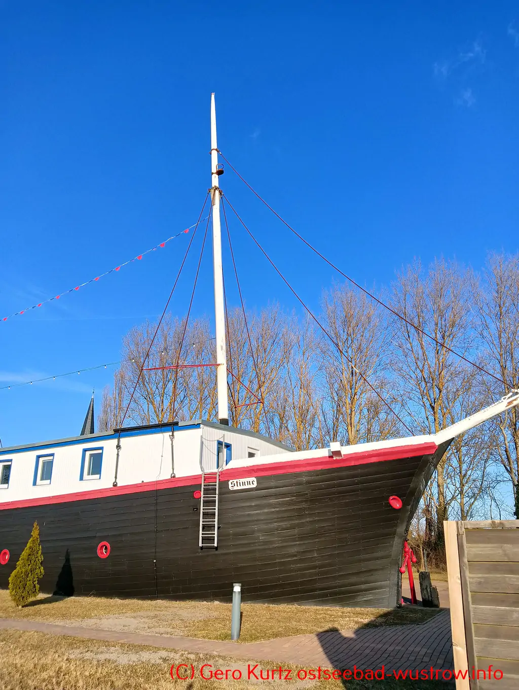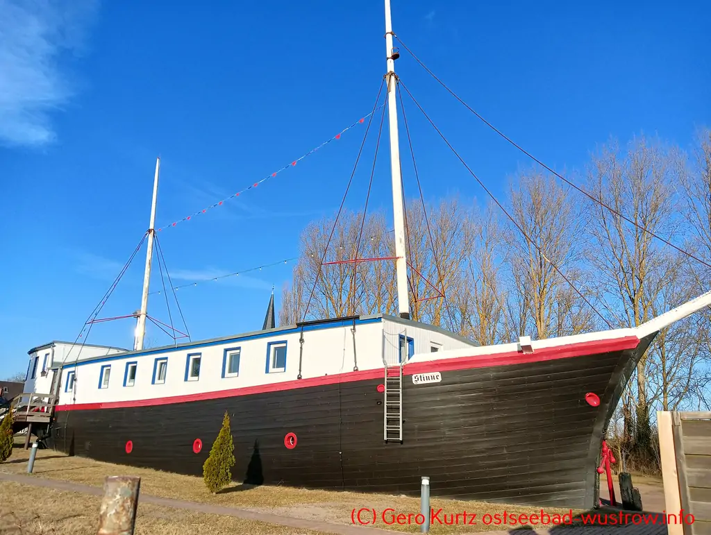 Das dänische Segelschiff Stinne strandete am 27. Februar 1965 bei einem schweren Wintersturm an der Ostseeküste vor Ostseebad Wustrow. Der Schiffseigentümer konnte die Bergung nicht bezahlen, weswegen sie in der damaligen DDR verblieb. Sie wurde in den Boddenhafen von Wustrow verholt, wo sie bis 1975 lag. 1975 wurde sie dann auf ihren jetzigen Liegeplatz am Kuhleger geschleppt.
