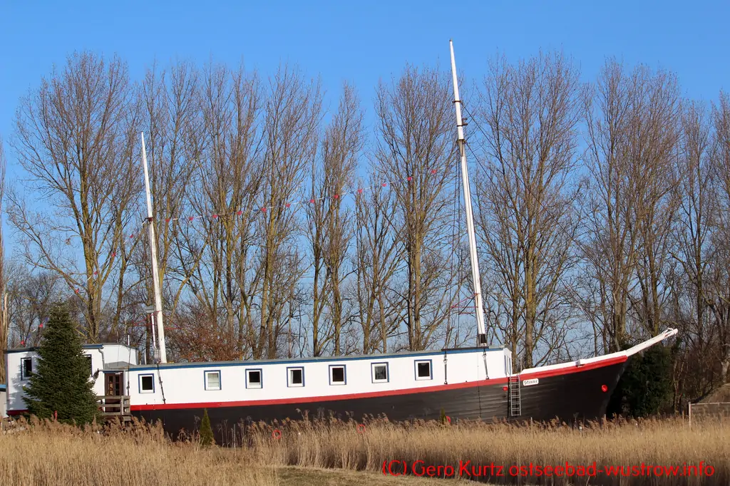 Den Kuhleger bis zum Ende fahren und dann ist dort bereits der kostenlose Parkplatz. Wichtig: Dieser Parkplatz nur für Gäste des Hotelschiffes und der Gaststätte. Wollen sie noch bummeln gehen, dann ist es besser am Hafen zu parken. Siehe Parkmöglichkeiten in Wustrow.
